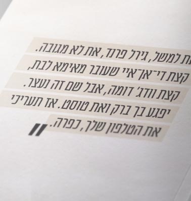 מתישהו, בין דקירה לנימול, הם יודעים שככה, בלי לראות פנים, בלי לדעת שמות, חשופים וחסרי אונים, פתאום טוב להם. יותר טוב משהיה להם הרבה זמן. אם עכשיו יפרצו לבית מכבי אש וינתקו את הפטמות שלהם, הטוב הזה עלול להיעלם. מחר שבת, יש להם זמן.